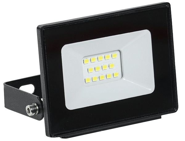 Прожектор светодиодный 10 Вт, световой поток 800 лм; цветовая температура 4000 К; угол светового пучка 110°, U-пит. 200…240 В/50 Гц, IP65, t-раб. -40…+50°С, габ.размеры 103х23х94 мм, алюминиевый корпус, черный.