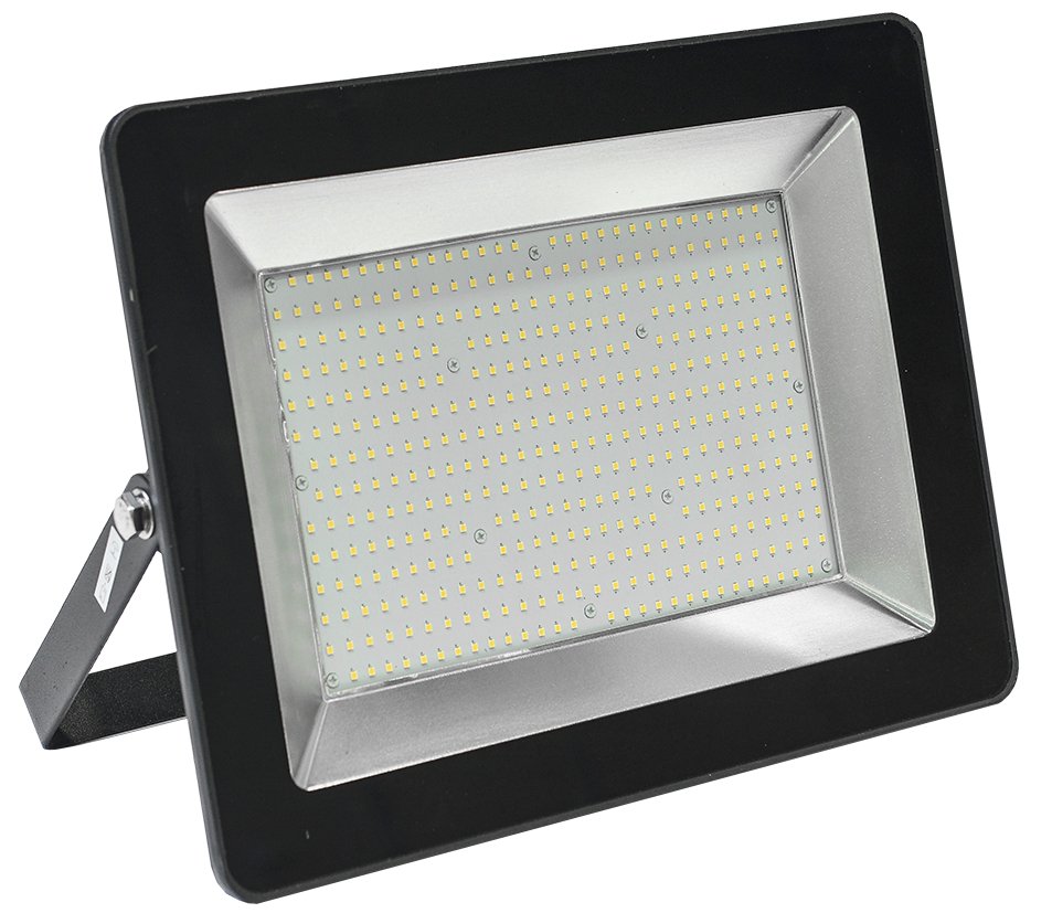 Прожектор светодиодный 200 Вт, световой поток 18000 лм; цветовая температура 6500 К; угол светового пучка 110°, U-пит. 200…240 В/50 Гц, IP65, t-раб. -40…+50°С, габ.размеры 420х43х340 мм, алюминиевый корпус, черный.
