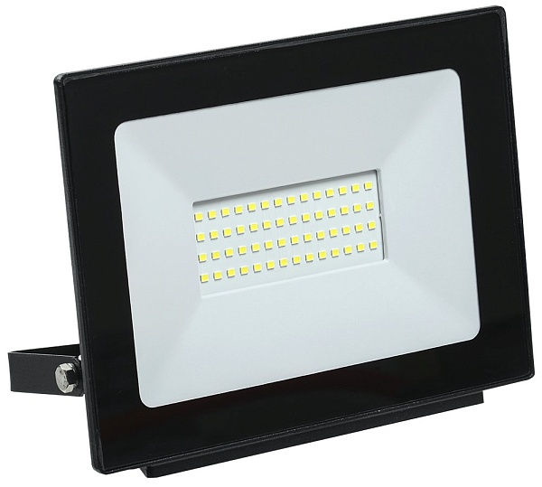Прожектор светодиодный 50 Вт, световой поток 4000 лм; цветовая температура 4000 К; угол светового пучка 110°, U-пит. 200…240 В/50 Гц, IP65, t-раб. -40…+50°С, габ.размеры 210х33х173 мм, алюминиевый корпус, черный.