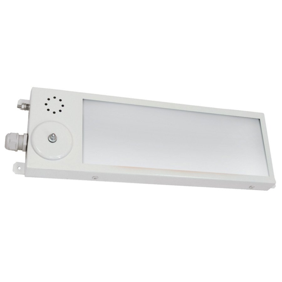 Светильник аварийного освещения промышленного исполнения; U-пит.10...28 В, I-потр.300 мА, IP68, t-раб.-55...+85°С. Корпус из стали