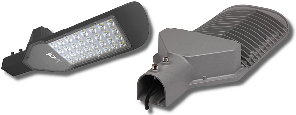 Светильник консольный уличный светодиодный, мощность 30 Вт, световой поток 5600 Лм, цветовая температура 5000 K, посадочный D=42 мм, угол освещения 120°, U-вх.85...265 В, класс защиты I, IP65, t-раб.–40...+50°C, климатическое исполнение У1, алюминиевый сплав, срок службы 35000 часов, 405×162×56 мм.