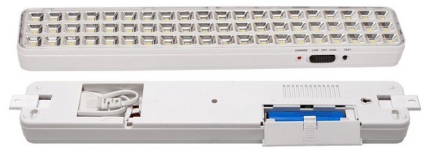 Светильник аварийного освещения светодиодный непостоянного действия, 187-242В, 60 сверх ярких светодиодов с длительным сроком службы, световой поток 200 Лм, 1 Li-ion аккумулятор 3.7 В, 2200 мАч, время свечения - до 3 часов, 340х55х30 мм, 0.25 кг, 0...+40°С