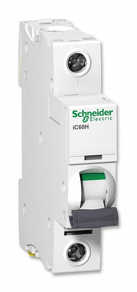 Модульный автоматический выключатель серии Acti 9 iC60 на DIN-рейку, 1-полюсный, номинальная отключающая способность 6кА, I-ном. 50А, хар-ка отключения "С", цвет RAL7035, IP20, t-раб. -35 ... +70 °С, габ. 85х18х78,5 мм, 0,215 кг