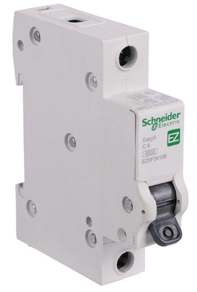 Модульный автоматический выключатель серии Easy9 на DIN-рейку, 1-полюсный, номинальная отключающая способность 4,5кА, I-ном. 63А, хар-ка отключения "С", цвет RAL7035, IP20, t-раб. -25 ... +60 °С, габ. 81х18х66,5 мм, 0,215 кг