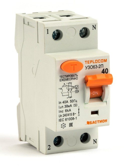 Устройство защитного отключения (УЗО), 2-полюсный; под винт 1.5...25 кв.мм; U-ном.240 В, I-ном.40 А; отключающая способность 6 кА; номинальный отключающий дифференциальный ток 30 мА; IP20, t-раб.-25…+40°С; 35х85х78 мм
