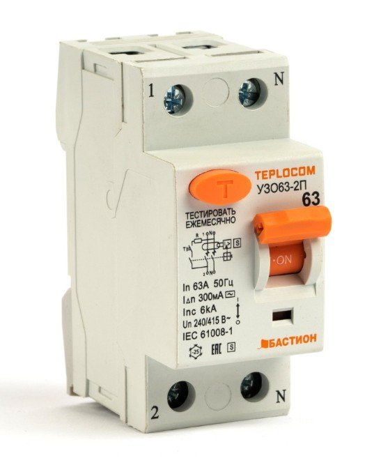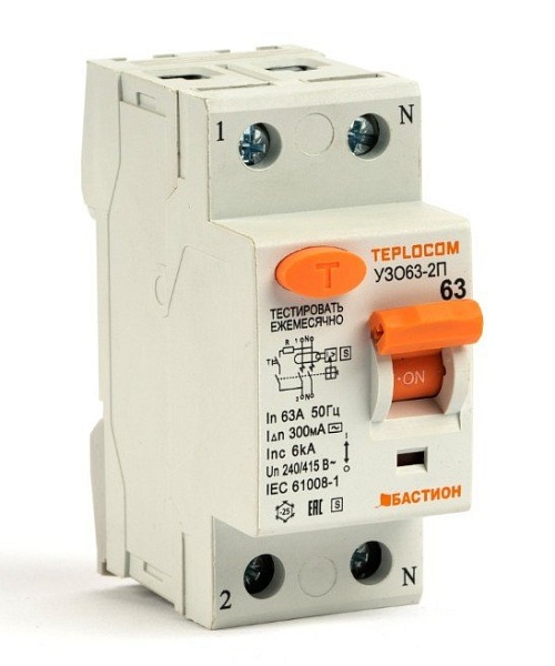 Устройство защитного отключения (УЗО), 2-полюсный; под винт 1.5...25 кв.мм; U-ном.240 В, I-ном.63 А; отключающая способность 6 кА; номинальный отключающий дифференциальный ток 300 мА; IP20, t-раб.-25…+40°С; 35х85х78 мм