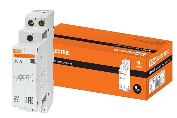 Контактор модульный на DIN-рейку. U-упр. перем. 230 В, U-коммут. 230 В, I-коммут. 20 А. 2 цепи на замыкание. IP20, t-раб. -5...+40°С, габ.размеры (ВхШхГ) 85х36х66 мм