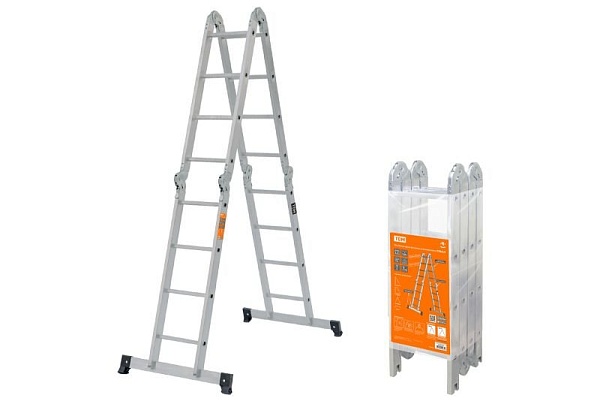 Лестница-трансформер алюминиевая, 4 секции по 4 ступени, h-слож. 1120 мм, h-разлож. в зависимости от режима h=433/209/117 см, max нагрузка 120 кг, вес 11.7 кг