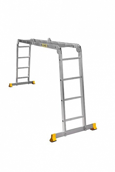 Лестница алюминиевая профессиональная четырёхсекционная шарнирная; кол-во ступеней - 4х4; может использоваться как: - простая лестница 4.66 м; - стремянка 2.33 м; длина в сложенном состоянии 1.22 м; 14.9 кг