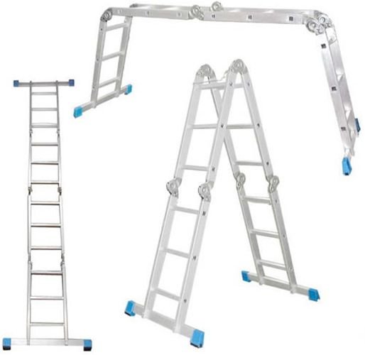 Лестница-трансформер, количество ступеней 4x4, количество секций 4, высота секции 1.22 м, высота максимальная 4.58 м, нагрузка до 150 кг, ширина основы 0.7 м, вес 12.2 кг.
