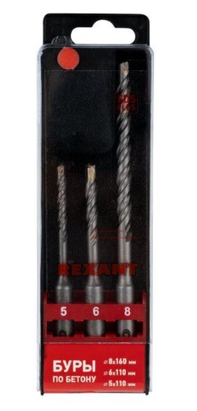 Набор буров по бетону 5х110, 6х110, 8х160 мм, 3 шт., в пластиковой коробке SDS PLUS REXANT (91-0404)
