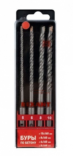 Набор буров по бетону SDS PLUS, 2 реж.кромки, 4 шт.: 5х160, 6х160, 8х160, 10х160 мм; в пласт.кейсе