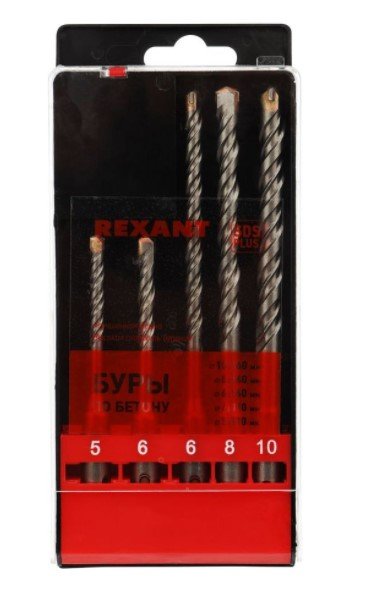 Набор буров по бетону SDS PLUS, 2 реж.кромки, 5 шт.: 5х110, 6х110, 6х160, 8х160, 10х160, в пласт.кейсе