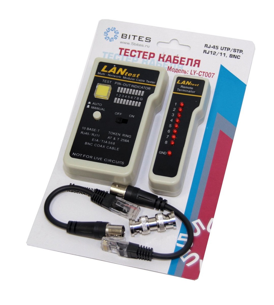 Кабельный -тестер для витой пары, коаксиала, телефона. 1 батарейка 9В "Крона" (входит в комплект поставки).