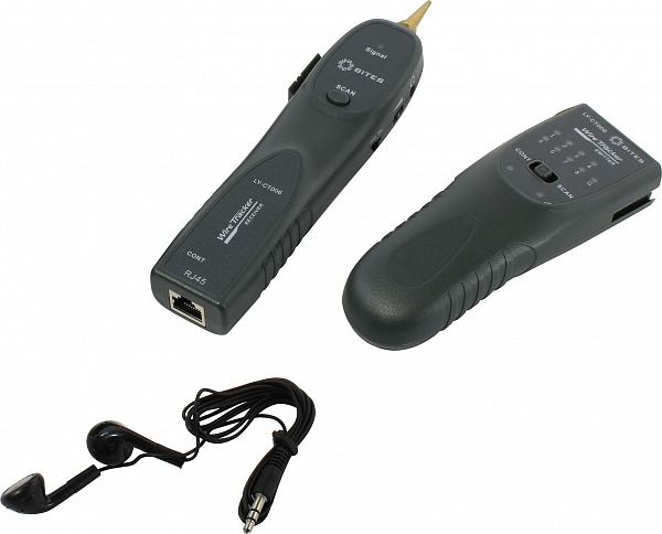 Тестер кабеля в RJ11/12/45, дистанция передачи сигнала: 2 км, сетевая топология, тональный сигнал, трассировка, комплектность: приемник (щуп), передатчик, тестовые патч-корды RJ45/11, зажимы «крокодил», наушники, чехол.
