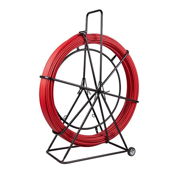Устройство затяжки кабеля; D=11.0мм, 50м. Красного цвета. Барабан с стеклопрутком установлен на металлической тележке с колесиками.