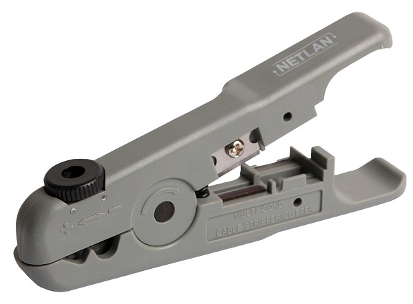 Инструмент универсальный, для зачистки и обрезки плоских и круглых кабелей (до 9мм) с жилами из мягких металлов (не для стали), с колесом регулировки глубины надреза оболочки.