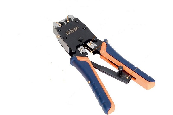 Инструмент обжимной профессиональный, 2 гнезда, торцевой, с храповиком, совместим с коннекторами: RJ45/8P8C, RJ12/6P6C, RJ11/6P4C.