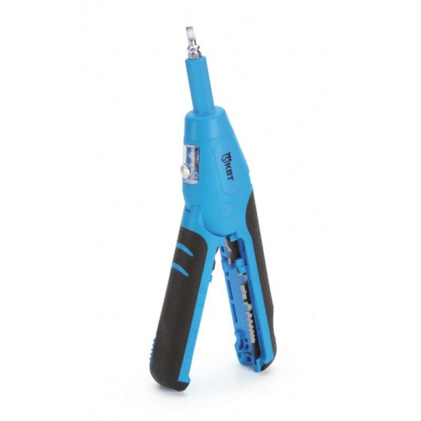 Ручной многофункциональный стриппер-отвертка с индикатором напряжения, снятие изоляции с проводов сечением 0.5...6 мм², снятие оболочки с круглых кабелей диаметром 8...13 мм, резка проводов диаметром до 9 мм, длина 200 мм, вес 145 г.