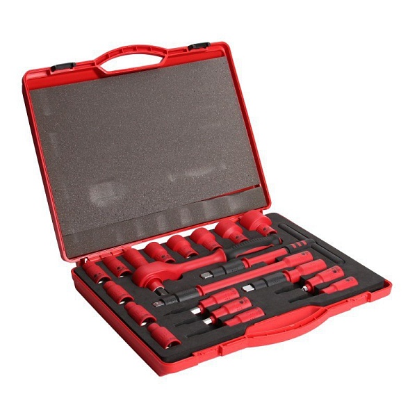 Набор диэлектрического инструмента электрика, 20 предметов 1/2 " для работы под напряжением до 1000 В, пластиковый кейс, габаритные размеры 375х320х65 мм, вес 3,95 кг