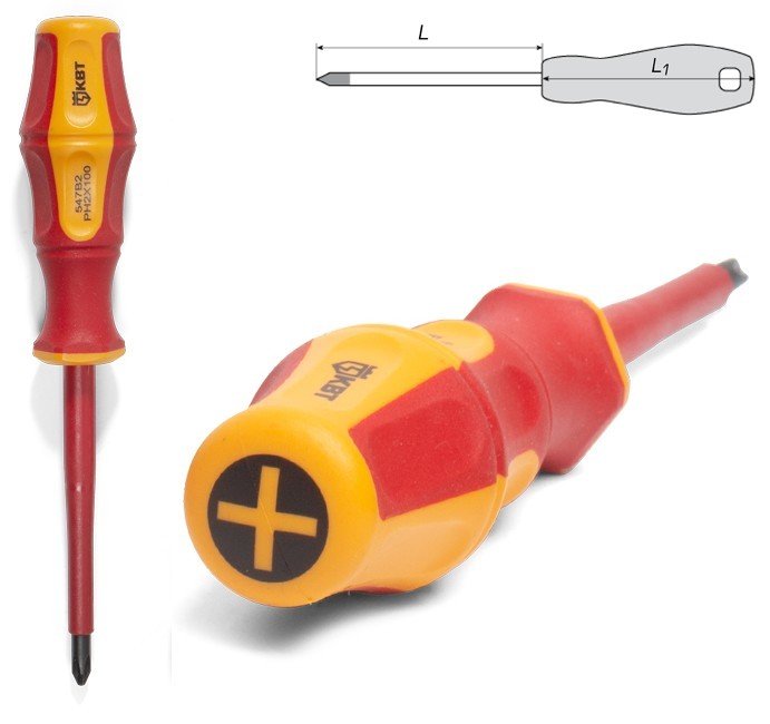 Диэлектрическая отвертка Phillips 2х100, работа под напряжением до 1000 В.