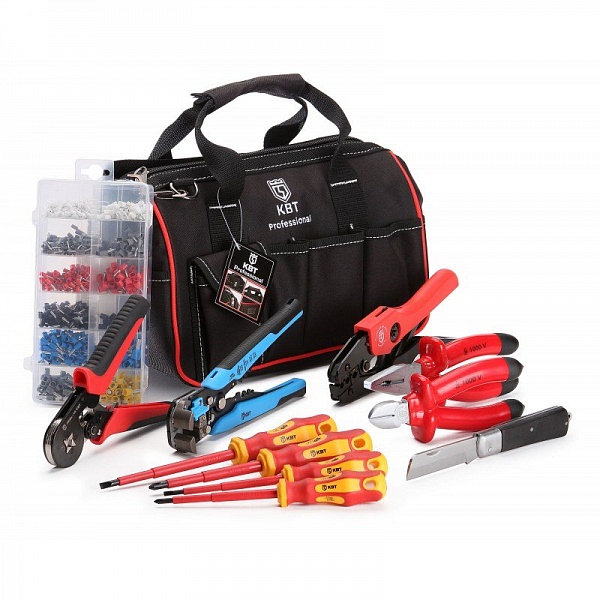 Набор инструментов электрика, 6 предметов включая НИИ-09 и сумку с наплечным ремнем, габаритные размеры 300х170х220 мм, вес 3,5 кг