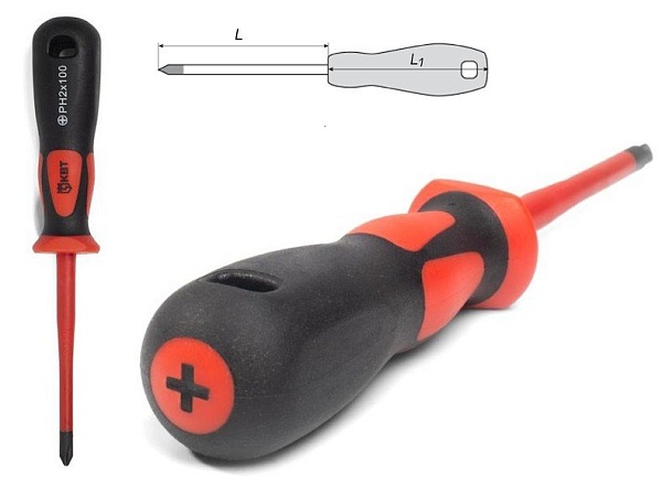 Диэлектрическая отвертка с изоляцией PH2x100, работа под напряжением до 1000 В.