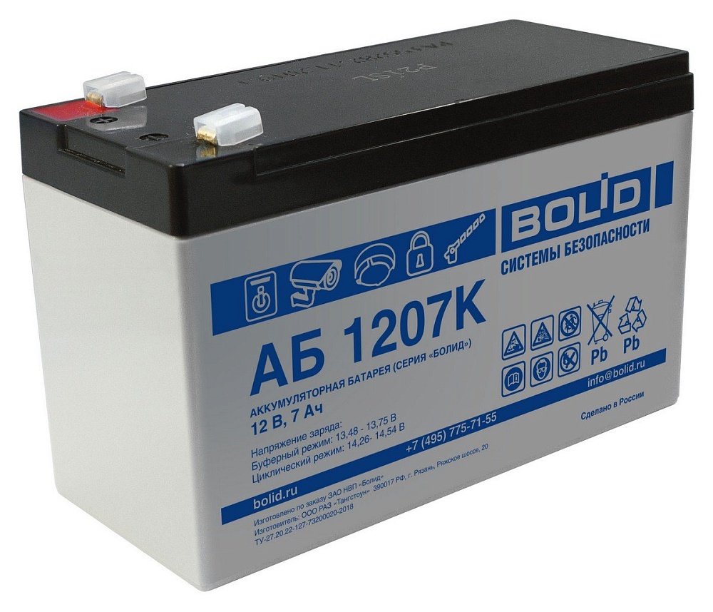 Аккумулятор свинцово-кислотный; 12В / 7 Ач; выводы Ш-4.8; срок службы 5 лет; 151х65х100 мм, 2.05 кг