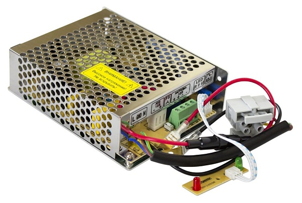 Источник вторичного электропитания резервированный бескорпусной, U-пит. 110...250 В/50 Гц, U-вых. пост. 12.6...13.6 В, I-ном 5 А, I-макс. 6 А, рекомендуемый аккумулятор 12 В до 17 Ач, I-заряд. 1 А; свет.индикаторы "СЕТЬ, АКБ, НАГРУЗКА", информ.выходы "ОК" "СЕТЬ, АКБ, НАГРУЗКА" 35 В/50 мА; электронная защита от короткого замыкания, защита аккумулятора от глубокого разряда, t-раб. -10...+40°C, габ.размеры 135х95х40 мм. Удовлетворяет требованиям ГОСТ Р 53325-2009, сертиф. ТР ЕАЭС 043/2017