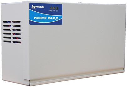 Uвых.24В, Iвых.2.5А(до 3А кратковрем.), Uвх.130…265В, Pпотр.85Вт, защита от КЗ и разряд., свет.индикац., вых."СК"(АВАРИЯ), под АКБ 2х12В/12Ач, IP20, tраб.-10…+50°С, 324х111х184мм, подкл.резерв.блока БР12, метал.корпус