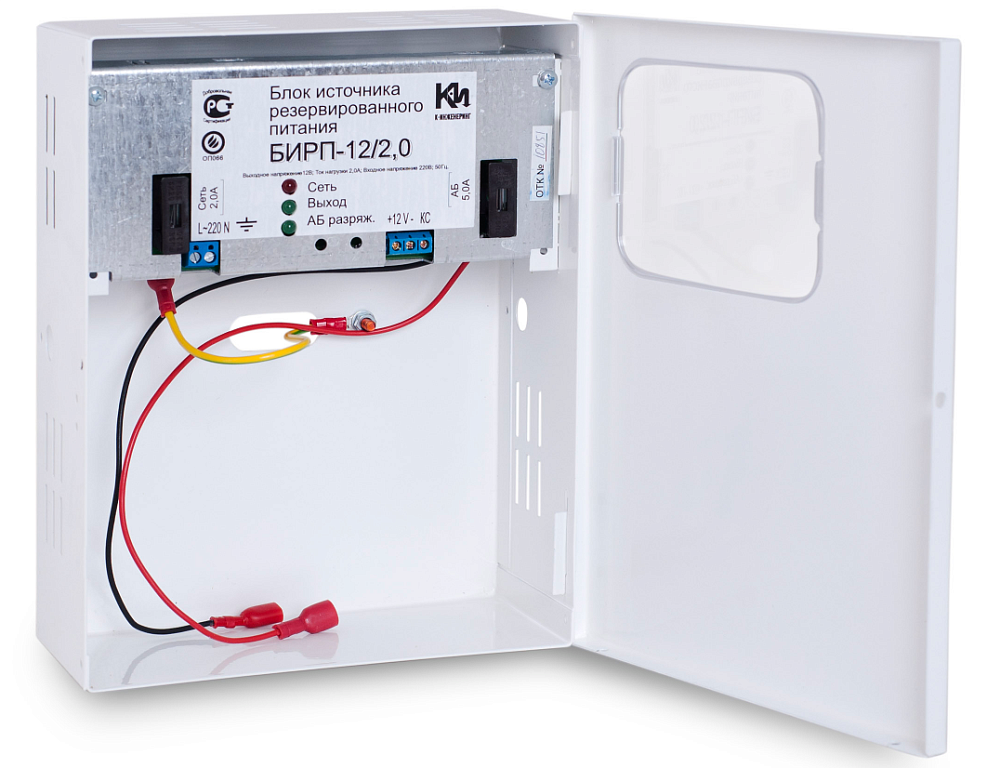 Источник вторичного электропитания резервированный, напряжение питания от сети переменного тока частотой 50 Гц 150...265 В, выходное напряжение постоянного тока 13,58...13,82 В, номинальный ток нагрузки 2 А, максимальный ток нагрузки 2.5 А, под аккумулятор 12 В/7 Ач, световая индикация режимов работы, диагностические выходы «оптореле», о наличия выходного напряжения, наличии АБ и наличии сети, электронная защита от короткого замыкания, защита аккумулятора от глубокого разряда, габаритные размеры 170х220х80 мм, металлический корпус