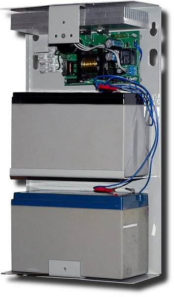 Источник питания, импульсный, U-вых.24В, I-вых.1А (до 2А max), под АКБ 12В/7Ач (2 шт.), 310х180х75 мм, 2кг