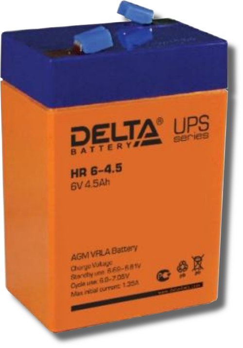 Свинцово-кислотный, герметичный аккумулятор, 6В/4,5Ач, ножевые клеммы 4,8 мм (F1), 70х47х101мм, 0,85 кг