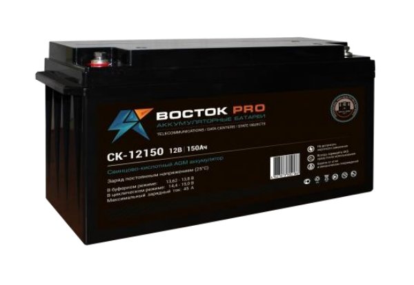 Свинцово-кислотный, герметичный аккумулятор, 12В/150Ач, клеммы под болт 8 мм, 483х170х241мм, 43кг