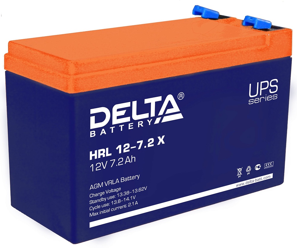 Свинцово-кислотный, герметичный аккумулятор, 12В/7,2Ач, ножевые клеммы 6,35 мм (F2), 151х65х94 мм, 2,6 кг