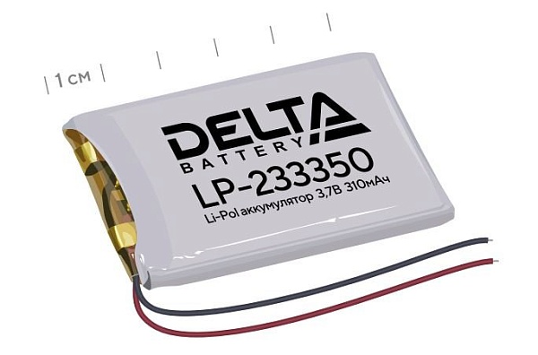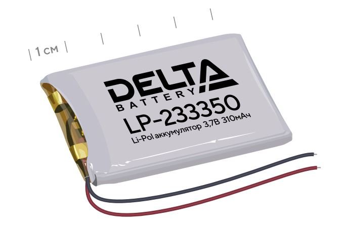Литий-полимерный аккумулятор призматический с защитой от перезаряда, глубокого разряда и короткого замыкания; 3.7 В / 310 мАч; 53х33.5х2.5 мм