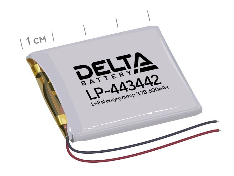 Литий-полимерный аккумулятор призматический с защитой от перезаряда, глубокого разряда и короткого замыкания; 3.7 В / 600 мАч; 42х34х4.4 мм