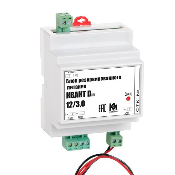 Резервированный источник питания с креплением на DIN рейку, U-вх.150...265 В, Uвых. постоянное 13.5-13.8 В, ном. ток нагрузки 2.8 А, макс. ток нагрузки 3.0 А (до 120 сек), под внешний аккумулятор 12 В 7 (или 12) Ач, инд.: "Выход", защита от короткого замыкания, превышения выходного напряжения и перегрузки, IP10, tраб. +5...+40°С, 88х72х59 мм, 0.7 кг