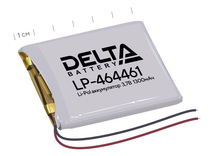 Литий-полимерный аккумулятор призматический с защитой от перезаряда, глубокого разряда и короткого замыкания; 3.7 В / 1300 мАч; 64х44х4.6 мм