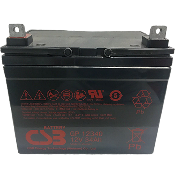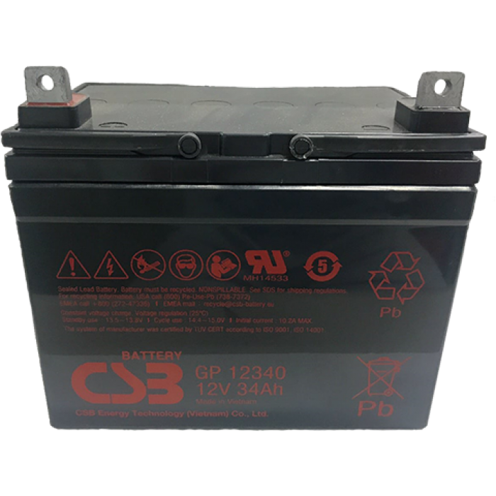 Свинцово-кислотный, герметичный аккумулятор, 12В/34Ач, под гайку и болт М6 (B5), 195,6х130х178,3мм, 10,48кг