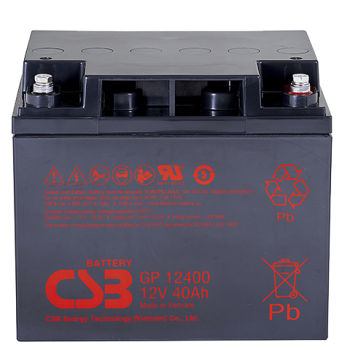 Свинцово-кислотный, герметичный аккумулятор, 12В/40Ач, под болт М6 (I2), 197х165х170,4мм, 12,63кг