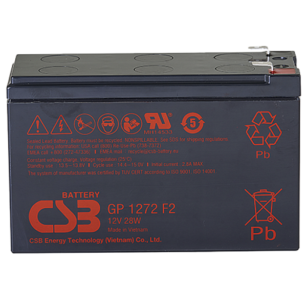 Свинцово-кислотный, герметичный аккумулятор, 12В/7,2Ач, ножевые клеммы 6.35х7.95 мм (F2), 150,9х64,8х98,6мм, 2,1кг