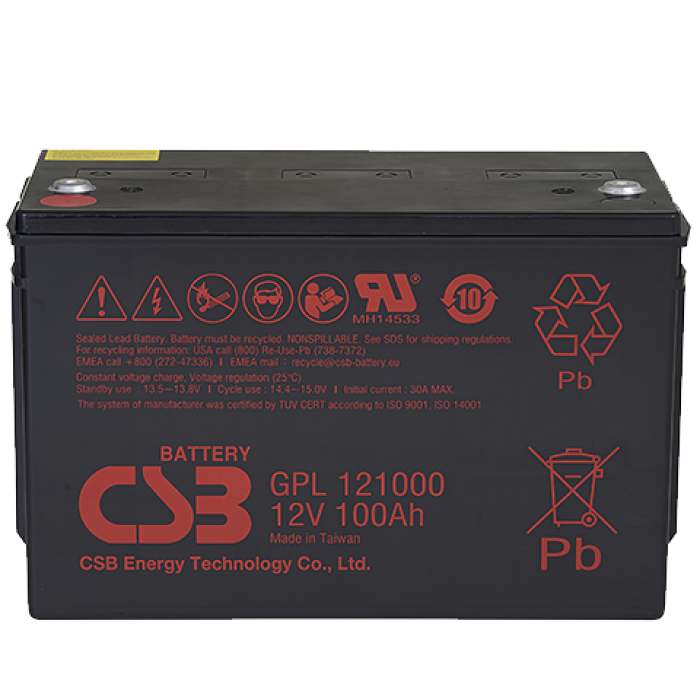 Свинцово-кислотный, герметичный аккумулятор, 12В/100Ач, под болт М6 (I2), 343х170х216,9мм, 33,5кг