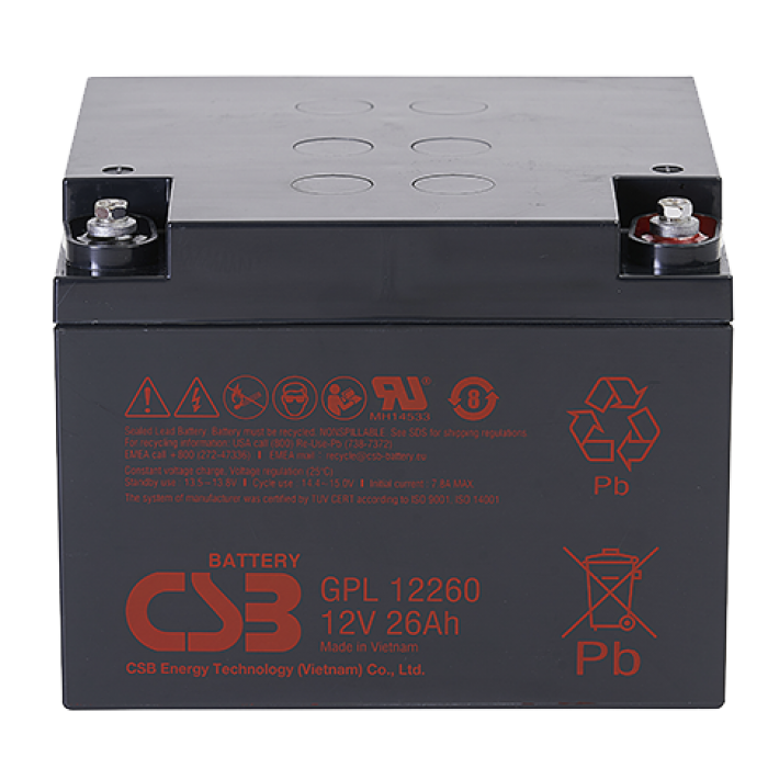 Свинцово-кислотный, герметичный аккумулятор, 12В/26Ач, под болт М5 (I1), 166х175х125мм, 8,3кг