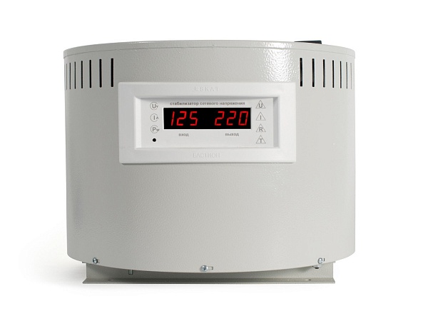 Стабилизатор напряжения серии PRO; U-вх.120...295 В, U-вых.202...239 В, P-нагр.до 10 кВА; 16 ступеней регулирования, точность стабилизации 3,5%, 4 температурных датчика для защиты от перегрева, тройная защита от перегрузки, цифровой дисплей, конвективное охлаждение без вентилятора, бесшумная работа, защитное отключение при аварийно низком/высоком напряжении с автоматическим восстановлением; IP20, t-раб.-10...+40°С, 274х350х375 мм, 19 кг