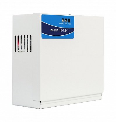 Uвых.12В, Iвых.1.2А(до 4А кратковрем.), Uвх.130…265В, Pпотр.30Вт, защита от КЗ и разряд., свет.индикац., вых."ОК"(Сеть;АКБ;Разряд), вых."СК" (Тампер), под АКБ 1х12В/7Ач или 2х12В/4.5 Ач, IP20, tраб.-25…+50°С, 194х86х184 мм, метал.корпус