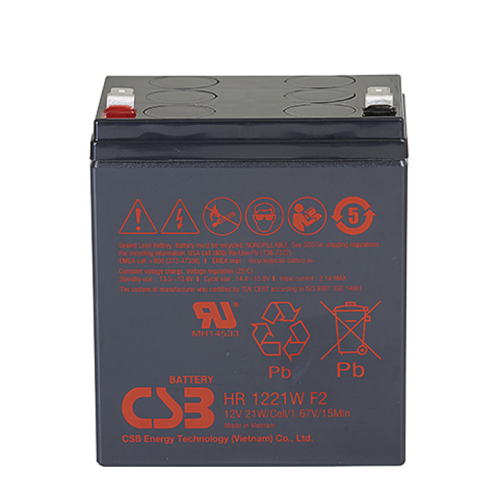 Свинцово-кислотный, герметичный аккумулятор, 12В/5,5Ач, ножевые клеммы 6.35х7.95 мм (F2), 90х70х106,1мм, 1,8кг