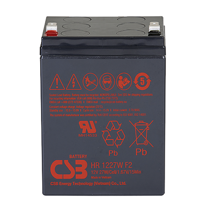 Свинцово-кислотный, герметичный аккумулятор, 12В/7Ач, ножевые клеммы 6.35х7.95 мм (F2), 90х70х106,1мм, 1,97кг