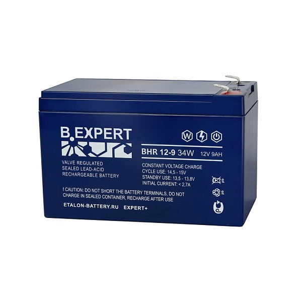 Свинцово-кислотный, герметичный аккумулятор, 12В/9Ач, ножевые клеммы 6.35мм F2, 151х65х94мм, 2.5кг