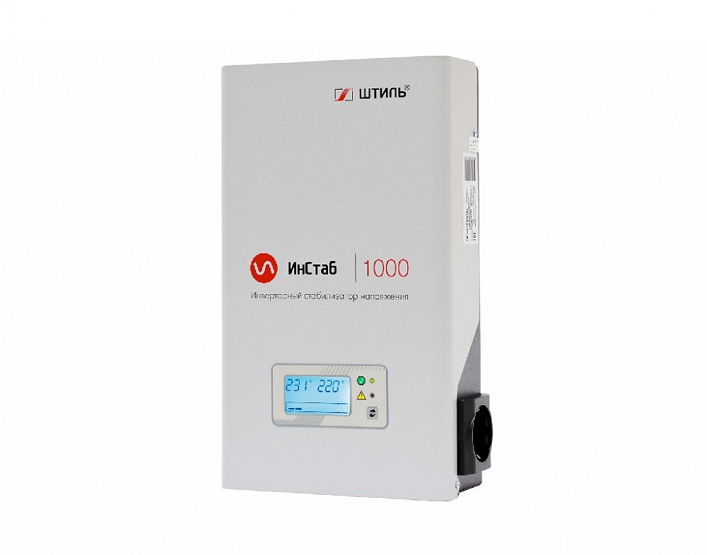 Стабилизатор переменного напряжения инверторный однофазный; P-нагр.1,0/0,8кВА/кВт(max), U-вх.90...310В, U-вых. 216...224 В, стабилизация выходного фазного напряжения ±2%; IP20, t-раб.+5...+40°С, 187x300x78мм
